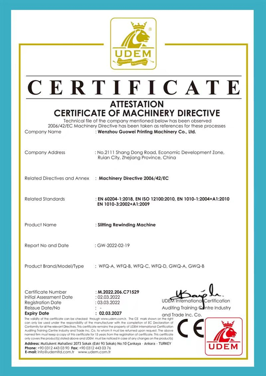 27年的發(fā)展和積淀,鍛造了一支創(chuàng)新能力強(qiáng)、技術(shù)素質(zhì)高的專業(yè)研發(fā)隊(duì)伍。多種產(chǎn)品通過了凹版印刷機(jī)和分切機(jī)CE認(rèn)證(證書號(hào):M.2022.206.C71530和M.2022.206.C71529)